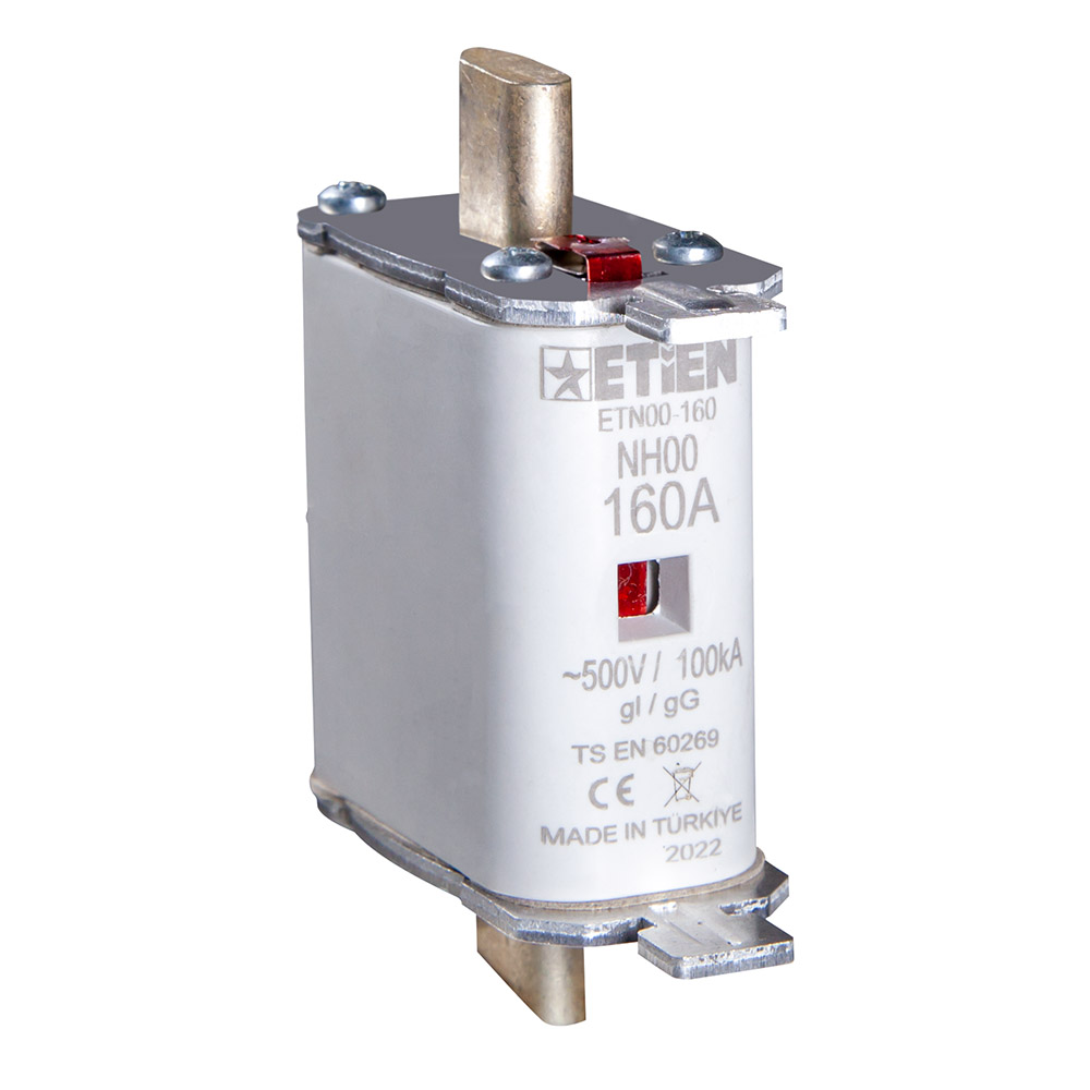 ETİEN Yeni Nesil Termoset A.G. NH Bıçaklı Sigorta Buşonları “gG” kesme aralığı ve kullanma aralığına uygun olarak üretilirler.